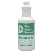 A bottle of Mountain Air Water Soluble Deodorant is displayed against a white background. The label is green with white text and a logo featuring a mountain and the number 'D'. The bottle is filled with a clear liquid and has a white cap. | BIG D INDUSTRIES Big D Water Soluble Deodorant - Qt, Mountain Air, 12/cs, Mountain Air, | 18ae37582159521148661fc8cc1fb1f64ebefaa9d98c302f617bb21f1b74fab2 | 000910714536 | 0 | 0 | 44 | 15 | 0 | 0 | |