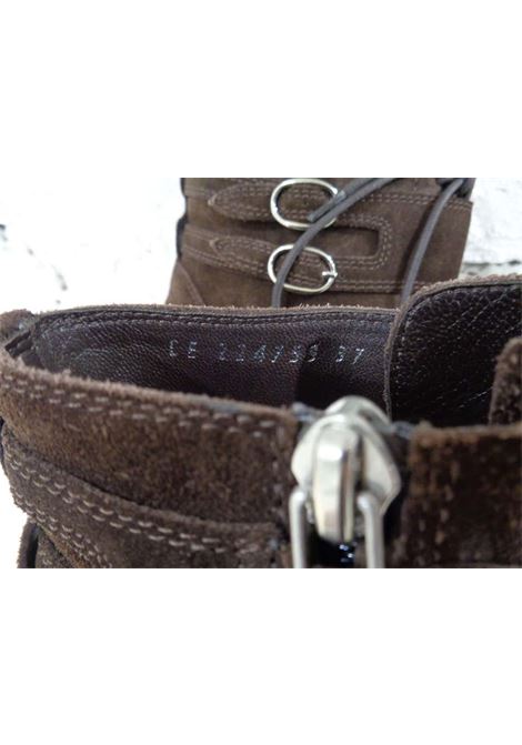 A close-up view of a brown leather shoe with a metal buckle. The buckle is attached to a strap that is wrapped around the shoe's upper part. The shoe's interior is visible, showing the lining and the brand name 'ECCO' embossed on it. The image is cropped tightly around the shoe, with no other elements visible in the background. | Yves Saint Laurent brown suede boots yves saint laurent | Shoes | CA01A0150EXAMARRONI | 0180b9466f59fb68499b0c02077b73782d51c96315d8e3d7804f2a587461a4a3 | 000910687806 | 0 | 0 | 59 | 13 | 0 | 0 | |