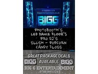 The second image is a promotional poster for an event called 'Big G Entertainment'. It features a dark background with a large, illuminated 'Big G' logo in the center. The poster advertises a 'Great Package Deal' available for the event, which includes 'Photobooth's LED Dance Floor', 'Pro DJ's', 'Slush - Popcorn - Cand... | All your entertainment requirements dance floor photobooth dj slush popcorn candy floss weddings | b1454a78e990b12498694326cae3cf6494551b1c182e9be867dcbeddf1087073 | 000910715259 | 0 | 0 | 71 | 13 | 0 | 0 | |