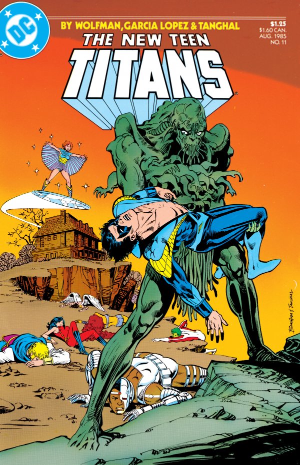 The cover of a comic book titled 'The New Teen Titans' with a vibrant orange background. The artwork features a large, green, monstrous creature with tentacles and a menacing expression, holding a man in a blue costume with a yellow emblem on his chest. The man appears to be in distress. In the background, there are va... | The New Teen Titans #11 | c73b087208d8dfb45c320b9d3d72cc13f3b222ab4ae9ce6a597332a8980b732a | 000910715166 | 0 | 0 | 87 | 5 | 0 | 0 | |