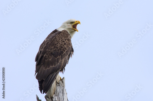 A bald eagle is perched on a tree branch with its mouth open, ready to scream. | Bald Eagle Calling to His Mate | 17843ad0aac5a2bf9a915fe790a5334a99a3f4f2fc1bacb172ffc97098b516b7 | 000910715674 | 0 | 0 | 16 | 6 | 0 | 0 | |