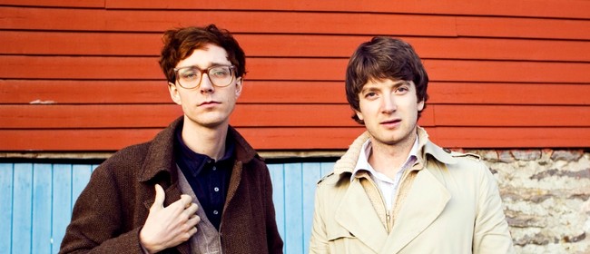 Two young men with glasses are standing side by side. The man on the left is wearing a brown coat, a blue shirt, and a brown vest. The man on the right is wearing a beige coat, a white shirt, and a beige vest. They are both smiling and looking directly at the camera. The background features a red wall with a blue secti... | Kings of Convenience | d2430520998fefedd911e8bfa63c5c0d9ff8773ca2bb90bd5aa2c6802a0286f8 | 000910715589 | 0 | 0 | 68 | 3 | 0 | 0 | |