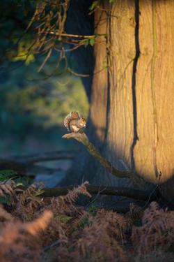 A small brown squirrel is perched on a tree branch surrounded by green leaves and ferns. | A Gray Squirrel Feeds in the Autumn Foliage of Richmond Park by Alex Saberi | 05c958d7953fdfe56fbd77767dc4fd3811a0b16c73cbb62f3d7c3164bca91f40 | 000910715618 | 0 | 0 | 16 | 14 | 0 | 0 | |