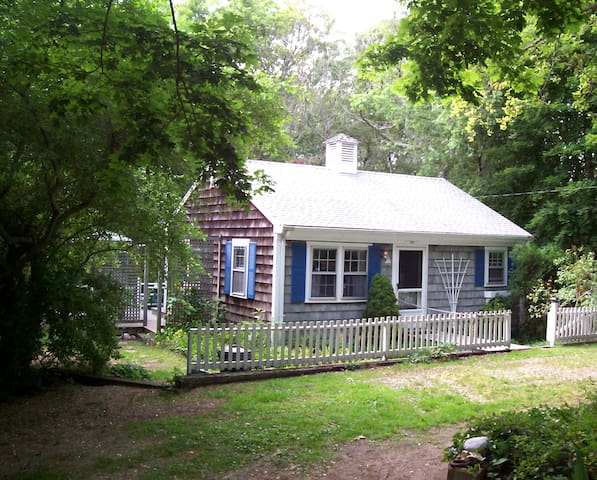A quaint blue and white house with a gray roof is surrounded by lush greenery. The house has a small chimney and a white picket fence in front. There are trees and bushes around the property, and the scene is illuminated by natural light, suggesting it is daytime. | Lark Cottage, Martha's Vineyard Isl - Vineyard Haven - Hus | 692839f734628ac6370ebc65f6a5bcab49280b63af3ec4e405f4bf5d21a86934 | 000910715923 | 0 | 0 | 48 | 10 | 0 | 0 | |