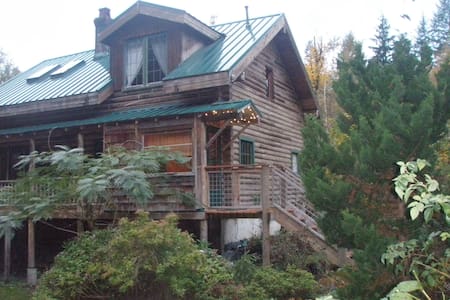 A rustic wooden cabin with a green metal roof is surrounded by lush greenery. The cabin has a prominent front porch with a railing and a staircase leading up to it. There are string lights hanging from the porch roof, and the windows have curtains. The surrounding trees are dense and green, and the sky is clear. | Log Home on Thundercreek - H\xc3\xa1z | f74e0edbdd6fee6daddad1ab179fd77a8e2b0c733d24a6f6f10ca6e5fdfe44b2 | 000910715952 | 0 | 0 | 57 | 6 | 0 | 0 | |