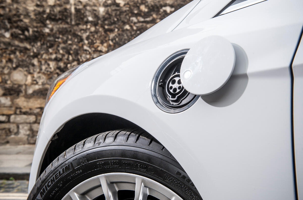 A close-up of a white car's rear wheel and gas cap. The wheel is covered with a black tire and the gas cap is circular with a silver emblem in the center. The car is parked on a surface with a textured pattern, possibly a cobblestone or stone pavement. | Ford Focus Electric charging port | 337614b000f588464c9ce41f60410933b70f5e8099dfc16c7272a13569bb446b | 000910715804 | 0 | 0 | 49 | 5 | 0 | 0 | |