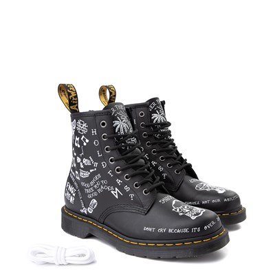 A pair of black high-top sneakers with white laces and a white sole. The sneakers feature a unique design with various patterns and text on the upper part, including palm trees, a skull, and phrases like 'Don't Cry Because It's Over, Smile Because It Happened'. The sneakers are displayed against a white background with... | Alternate view of Dr. Martens 1460 8-Eye Scribble Boot | 039bc06e4a284ff396dcd74f79d5025229beaeddb5441064f531a480e496a0a0 | 000910715809 | 0 | 0 | 62 | 9 | 0 | 0 | |