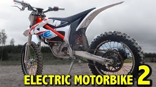 A close-up of a dirt bike with a white and black color scheme, featuring a prominent number '2' on the front wheel. The bike is positioned on a dirt surface with a cloudy sky in the background. The image has a yellow and black text overlay that reads 'ELECTRIC MOTORBIKE 2'. | KTM Freeride E-SX Test Ride 2 | cf38ed59358fad26843e9cc87d5fe1fd27c87440e1d2f17536f0e87088178072 | 000910715863 | 0 | 0 | 51 | 6 | 0 | 0 | |