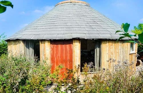 A rustic wooden hut with a conical thatched roof is surrounded by overgrown vegetation. The hut has a red door and a window with a wooden frame. The roof is covered with a layer of thatch, and the structure appears to be made of wooden planks. The surrounding area is dense with weeds and small plants, giving the impres... | Last Minute Cottages - The Roundhouse | 71d867224c6a230615fbc5a958b00e6d1b73b094a971decaa8e466694f05bd67 | 000910716266 | 0 | 0 | 65 | 6 | 0 | 0 | |