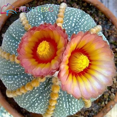 A close-up image of a cactus with two prominent yellow flowers. The cactus has a textured surface with small bumps and is surrounded by a pot filled with small rocks. The image is labeled 'CHENGTE FENG' in the top left corner. | 120/Bag Mix Succulent bonsai Exotic Cactus Bonsai Plants bonsai Flower Planters For Home & Garden Free Shipping | d9c0f41e4a630159aca52f6f1ac4b1b59a266b0b9e3bfc6e1b2ae5ce01c26e13 | 000910716567 | 0 | 0 | 41 | 17 | 0 | 0 | |