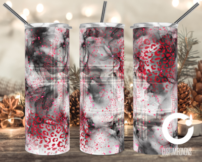Three tall, slender vases with a unique, abstract design are arranged on a wooden surface. The vases have a textured appearance with a combination of white, red, and black colors. The background features a festive holiday setting with string lights and a pine cone arrangement. The vases are positioned in a way that cre... | Watercolor Cheetah Plaid Splash 20oz Tumbler Digital | ef9453628fc8addc0a257c3c85cdd913eb6e9fbe2b451f1b897e6dc3576bc033 | 000910716500 | 0 | 0 | 80 | 7 | 0 | 0 | |