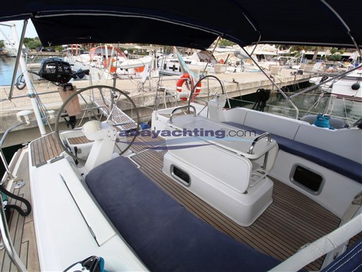 The first image shows the interior of a yacht with a blue and white color scheme. The yacht is docked at a marina with several other boats in the background. The interior features a wooden deck with a blue cushioned seat, a steering wheel, and a control panel with various buttons and gauges. There is a lifebuoy attache... | Abayachting Jeanneau Sun Odyssey 49 8 | face53591b66b2ed01c9e47627c1e07e9666246e90c69962519a433abe180860 | 000910716496 | 0 | 0 | 72 | 6 | 0 | 0 | |