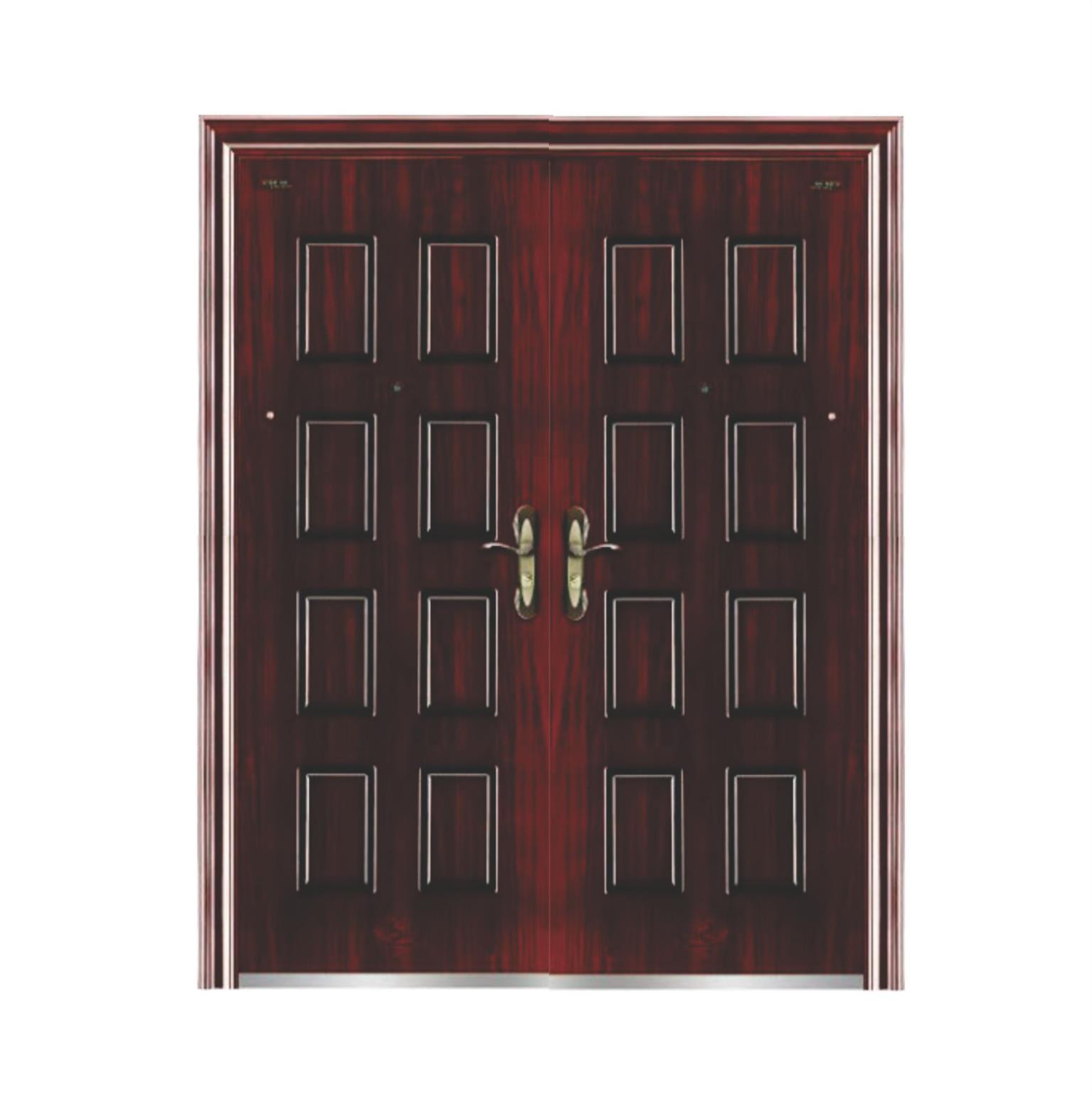 A wooden door with a dark brown finish and a black frame. The door has a rectangular panel design with a grid pattern of smaller squares. There are two brass door handles, one on each side of the door, and a small brass keyhole on the right side. The door is set against a white background. | 1.5 Double Security Door | ebc042d32d4ebd7c8337009bbd21a8393fca0294a50ad809e31729d3754924af | 000910716413 | 0 | 0 | 56 | 4 | 0 | 0 | |