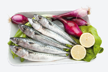 A plate of fresh fish, including sardines and mackerel, is accompanied by a lemon and a bunch of red onions. | Food cousine composition ingredient for eating, Fish composition mackerel on plate with lemon, salad and onions | cfd24c47591b77d1517bc7f3f74e86f3999c69adc6a265aa2bbd1c30c7ac5a63 | 000910716514 | 0 | 0 | 20 | 16 | 0 | 0 | |