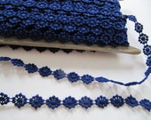 A blue knitted piece with a lace-like pattern is displayed on a white background. The piece has a textured surface with a series of interconnected loops and stitches, resembling a crochet or knitting design. The edges of the piece are fringed with a similar pattern, and there is a white object partially visible on the ... | 5 yds Vintage flower trim, dark blue royal blue embroidered floral trim by the yard, circa 1940's, millinery trim, tiny single appliques | 4d81a81bb7a97e35012fa3d9560d66f4c9d3659fa23681d49c406cd16ad9c9e5 | 000910716732 | 0 | 0 | 60 | 22 | 0 | 0 | |