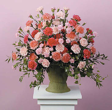 A vibrant bouquet of flowers in a green vase is placed on a white pedestal against a pink background. The bouquet consists of various flowers including roses, carnations, and other blooms in shades of pink, red, and orange. The flowers are arranged in a lush and full manner, with some petals and leaves extending beyond... | Arrangements-34-1 Funeral Arrangement Flowers | 8254ff804efe65997320167912a0f939652ef4fe4751f9aa469a54bc2ed5ec06 | 000910716791 | 0 | 0 | 57 | 4 | 0 | 0 | |