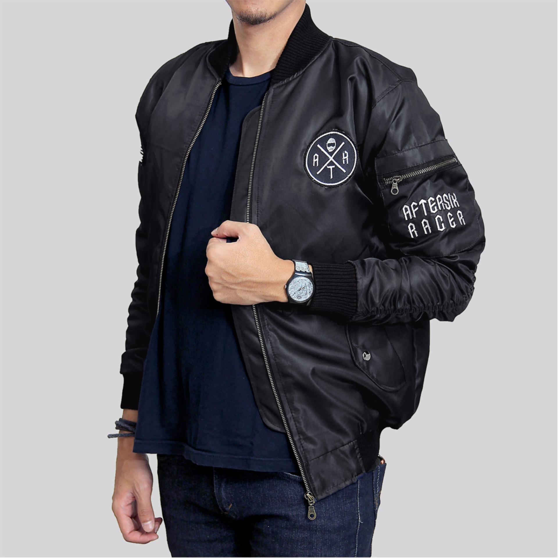 A man is wearing a black leather jacket with a white logo on the back and a silver watch on his left wrist. | Toko Jaket Bomber Pria Aftersix Racer Dekat Sini | f3a742eac2705cad95298e7f33073554e05cda3df48bfa122bbe3a34d6210e59 | 000910716957 | 0 | 0 | 23 | 8 | 0 | 0 | |