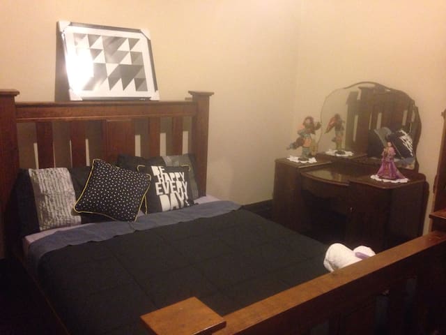 A cozy bedroom scene with a wooden bed frame and a black bedspread. The bed is adorned with various pillows, including a black and white polka dot pillow, a gray pillow with a yellow trim, and a pillow with a 'Happy Day' message. Above the bed, there is a framed abstract artwork on the wall. To the right of the bed, th... | GROUP BOOKING - Wallsend - Talo | 69a2b16ad185fd4cf7f8e67bd3a3e73b1d6925d74e3cc5d973454680cb1a2ab4 | 000910717155 | 0 | 0 | 91 | 6 | 0 | 0 | |