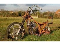A rusty old motorcycle with a flat tire is abandoned in a grassy field. The bike is missing its front wheel and has a broken seat. The frame is heavily corroded, and the engine appears to be in poor condition. The surrounding area is overgrown with grass and weeds, and there are trees in the background. | Motorcycle or Trike WANTED for project I collect Runner/Non runner Motorbike Motorcycles Salvage | bf167a057e95dacec0d835c9ea6f5119fb6918cdf7def4b21a044b394f657a05 | 000910717500 | 0 | 0 | 56 | 13 | 0 | 0 | |