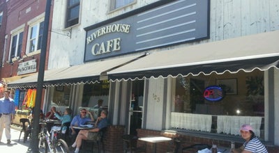 The first image shows the exterior of a cafe called 'Riverhouse Cafe' with a sign above the entrance. The cafe has a large awning with a striped pattern. There are several people sitting outside, enjoying their time. One person is standing near the entrance, and there is a bicycle parked on the left side of the image. ... | Photo of Cafe The Riverhouse Cafe at 123 Union Sq, Milford, NH 03055, United States | cac4d21abf059a3f7bf908acc32f1e3b0fe026bdfa5a5bae9cf54db0153bf5c6 | 000910717483 | 0 | 0 | 88 | 15 | 0 | 0 | |
