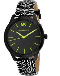 A black and gold Michael Kors watch with a black and gold patterned band is displayed against a white background. | Michael Kors Runway Watch - Black | 37f0e4ffeea51dd91f831ea715221836690a9f928d7f906bcbb9be24704e72d9 | 000910688036 | 0 | 0 | 20 | 6 | 0 | 0 | |