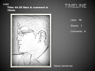 A grayscale image of a man with glasses, wearing a collared shirt, with a background that resembles a newspaper or book page. The image has a textured appearance, and there are text overlays at the top and bottom, including a title 'TIMELINE' and a name 'KAMAL HARI' at the bottom. | #:265\n Title: hit 20 likes & comment in\n 15min\n\n\n\n Likes: 14\n\n ... | 7eec2d762a51d97a245144833687b414daa404d5c81771af4172e0f15c3e3b21 | 000910688155 | 0 | 0 | 50 | 12 | 0 | 0 |
