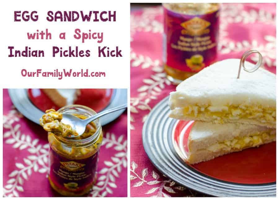 A sandwich with a spicy Indian pickle kick is displayed on a plate, accompanied by a jar of the same pickle. The sandwich is cut in half, revealing the layers of bread and filling. The plate is on a table with a red and white checkered tablecloth. The background features a red curtain with a floral pattern. | Spice up your egg sandwich lunch recipe with zesty, delicious Mango Indian Style Pickles from Pataks Canada! Check out how easy it is to Mix in a Little India! | b19b5242da640329ff6116d9dde6fb6f6c64f1aa945bdb6832d2cffee037c8b2 | 000910717612 | 0 | 0 | 57 | 29 | 0 | 0 | |