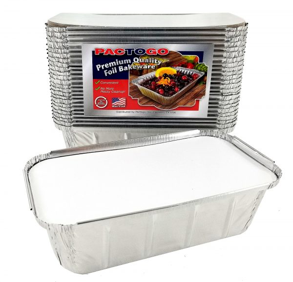 A silver aluminum foil container with a label that reads 'PACTO-Go Premium Quality Full Size Aluminum Foil Baking Pan' is shown. The label features an image of a baked dish with a variety of fruits and vegetables, and the text includes a red and white American flag. The container is empty and appears to be new. | Foil Container With Lids Aluminium 4.5L | 4f17af6f4613c6610ca12a9861d1c2b49df21c995d46bac3a4a220c53e76ce8a | 000910717566 | 0 | 0 | 56 | 6 | 0 | 0 | |