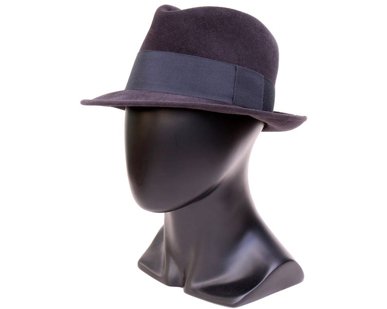 A black fedora hat with a wide brim and indented crown is displayed on a black mannequin head. The hat has a ribbon band around the crown and is positioned at a slight angle, giving it a stylish appearance. The mannequin head is against a white background, highlighting the hat's color and texture. | 2d28941884b Navy Felt Fedora Hat For Men Dark Blue Hat Men s Dress Hat | ca578c3d220274a5a909c0600a8b8f188e7dec85371211bb467755a3e5565bae | 000910717716 | 0 | 0 | 53 | 14 | 0 | 0 | |