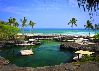 A serene tropical beach scene with a clear blue sky, a calm turquoise lagoon, and a sandy beach lined with palm trees. The beach is adorned with numerous white umbrellas and lounge chairs, creating a relaxing atmosphere. The ocean waves gently lap at the shore, and the overall setting is peaceful and inviting. | Four Seasons Resort Hualalai at Historic Ka'upuleh | cb0a3ce57abf3905639080ade433270dee40bb8587ee3a760aa56c680774a830 | 000910718316 | 0 | 0 | 53 | 7 | 0 | 0 | |