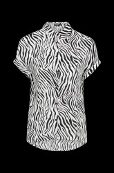 A black and white zebra print t-shirt with a crew neck and short sleeves. The t-shirt is displayed against a black background, and the zebra pattern is prominent with black stripes on a white background. | Bluse Oline Zebra Top SS | d418ee32f66963b6921ec5da185425483011cbaa72a73b4df51d458cdb1a61c7 | 000910718327 | 0 | 0 | 35 | 5 | 0 | 0 | |