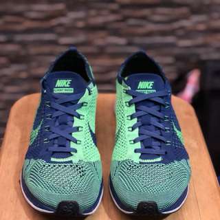 A pair of blue and green Nike sneakers with white laces are placed on a wooden surface. The sneakers are positioned side by side, with the left shoe on the left and the right shoe on the right. The background features a wooden wall with a vertical panel design. | Nike Flyknit Racer 2.0 Brave Blue/Poison Green | 1fbe2486865e95bcfd046bc92bfc451c4fda0e4ec2b8f75c810c3779b67ab0ed | 000910718356 | 0 | 0 | 49 | 7 | 0 | 0 | |