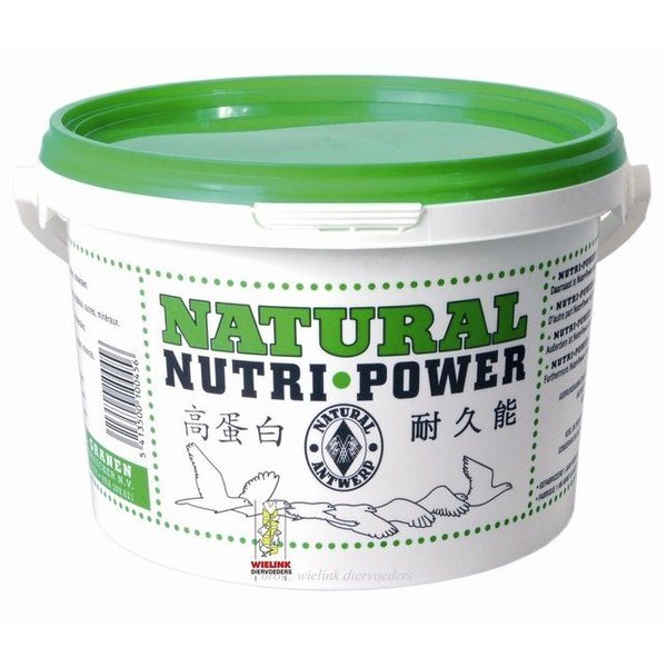 A white plastic container with a green lid is labeled 'NATURAL NUTRIPOWER' in green and white. The label also features a black and white illustration of a bird in flight, surrounded by Chinese characters. The container has a barcode on the left side and a logo at the bottom. | Natural Nutri-Power (1,5 kg) | d36d27ab621773a5898f08eac83d163b9732b15e27b7a9f7c149c06d7c881489 | 000910718458 | 0 | 0 | 49 | 4 | 0 | 0 | |
