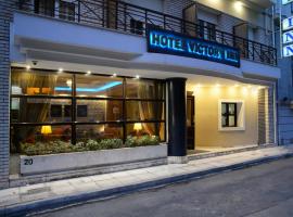 The first image shows the exterior of a hotel called 'Hotel Victoria' at night. The building has a modern design with a lit-up sign on the second floor. The ground floor has large windows with curtains, and there are plants in the window sills. The entrance is flanked by two columns, and the sidewalk in front of the ho... | Victory Inn, hotel near Goulandris Natural History Museum, Athens | 3f4526f7e4527ac0756e9e74802badfb70495b61eb11bd6d8af613b4c9dda1b5 | 000910718793 | 0 | 0 | 73 | 9 | 0 | 0 | |
