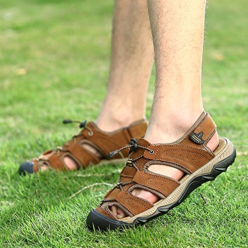 A person is standing on a grassy field wearing brown sandals. | Leather Liveinu Sandal Sandals Beach Close Toe Men's Brown Sport Athletic Shoes xqXFIXa | dcdac24534a3252b1afb72e355667b775ccc31004f0e83f71900ce4c10878f27 | 000910718955 | 0 | 0 | 11 | 13 | 0 | 0 | |