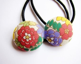 A black cord with two colorful flower-shaped beads is displayed against a white background. The beads are intricately designed with various colors such as red, yellow, green, purple, and blue, and feature a floral pattern with detailed petals and leaves. | Button Ponytail Holders - Flowers in Spring | 3926d22856ef75d341b4caf7eb2187e8ecd860074776ec4018ac61926c54505b | 000910718947 | 0 | 0 | 40 | 7 | 0 | 0 | |