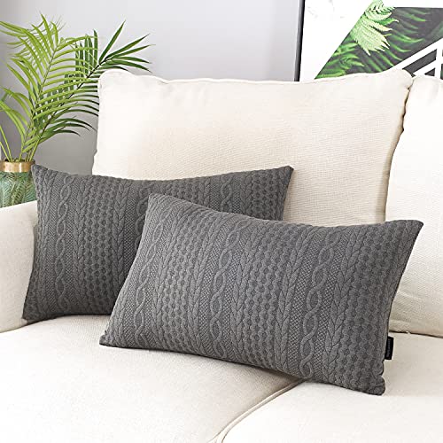 A gray throw pillow with a geometric pattern is placed on a white couch. | Booque Valley Lumbar Pillow Covers, Pack of 2 Super Soft Elegant 12 x 20 inch Oblong Rectangular Throw Pillow Covers Modern Embossed Patterned Knit Gray Cushion Covers for Sofa Bed Car Chair(Grey) | 03782a8d36c0a581f521995ab41404d6344440d2ed750fbe286362c63c34ed43 | 000910719028 | 0 | 0 | 14 | 32 | 0 | 0 | |
