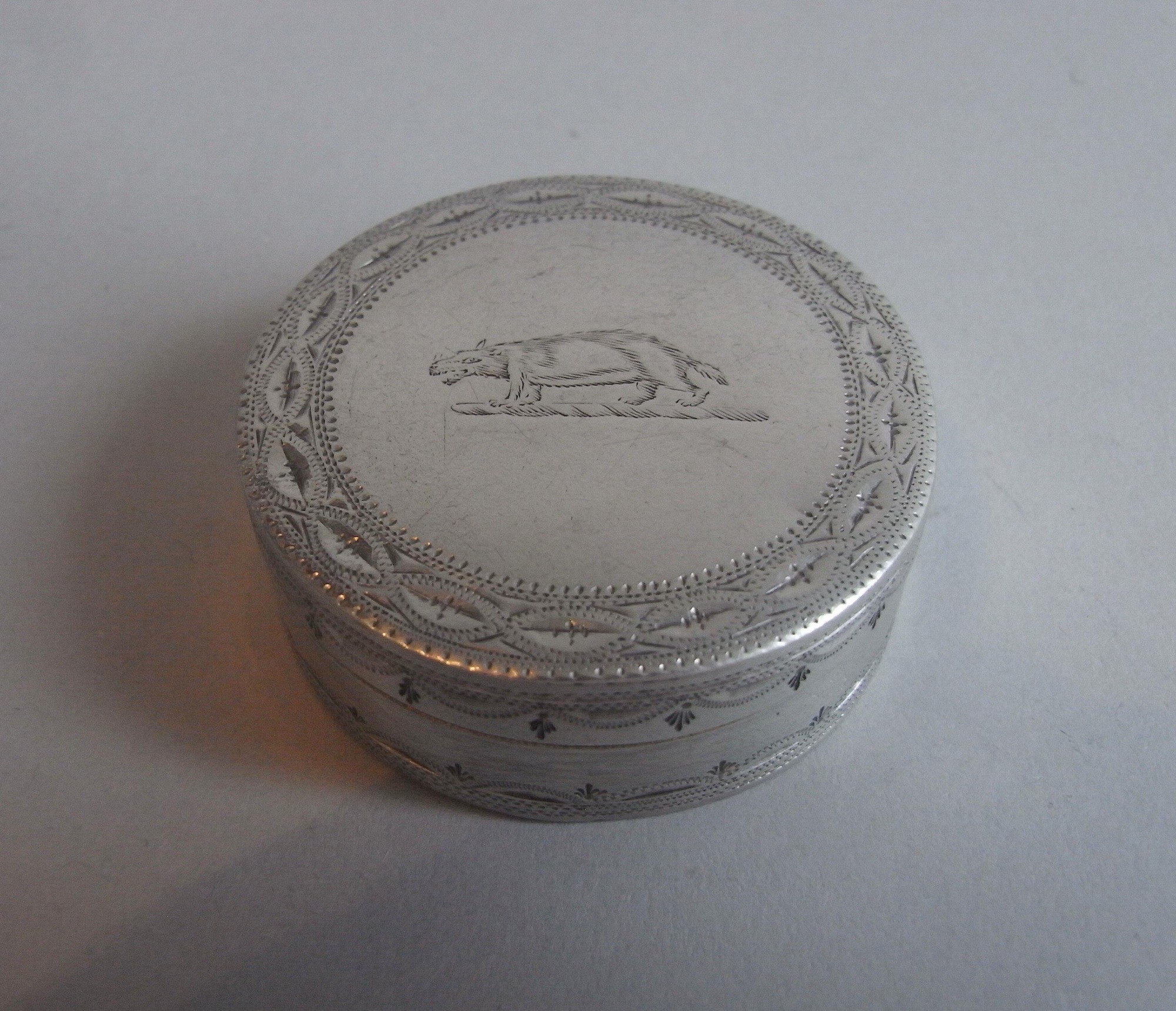 A silver box with intricate designs and a lion emblem on the lid is placed on a white surface. | Peter & Ann Bateman. A very rare George III Ladys Toilet/Snuff Box made in London in 1798 by Peter & Ann Bateman. | 3ec09469503f0c10b6b2b020d7a118c8f2f56b46fd113a9627e947939d5b5c50 | 000910718911 | 0 | 0 | 19 | 22 | 0 | 0 | |