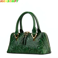 A green handbag with a gold buckle and a patterned design on the front is displayed against a white background. The handbag has a structured shape with a top handle and a long strap. The brand name 'HANSONMY' is visible in the top left corner, along with a 'V' logo. | 2020 New women Genuine Leather Shell Bags luxury fashion Handbags ladies Shoulder Bags female vintage crossbody Messenger bags | 2f61b4e4c4e992fee050275b47fb657faaba03c99cd0da4afad5b9a1b8bc0f46 | 000910719637 | 0 | 0 | 50 | 18 | 0 | 0 | |