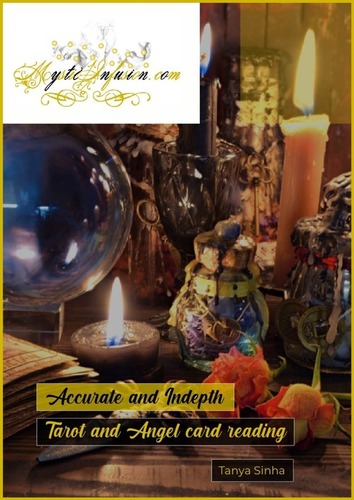 The second image is a promotional poster for a book titled 'Accurate and Insight Tarot and Angel Card Reading' by Tanaya Sinha. The poster features a mystical and warm setting with various items such as a lit candle, a crystal ball, a stack of books, and a vase with flowers. The background is adorned with ornate golden... | Accurate and Indepth Tarot and Angel card reading | ea839723acd810fb7f0c2ad984914bb84c9ba54e5d6d476cc17240ef9f8bde02 | 000910719671 | 0 | 0 | 89 | 8 | 0 | 0 | |
