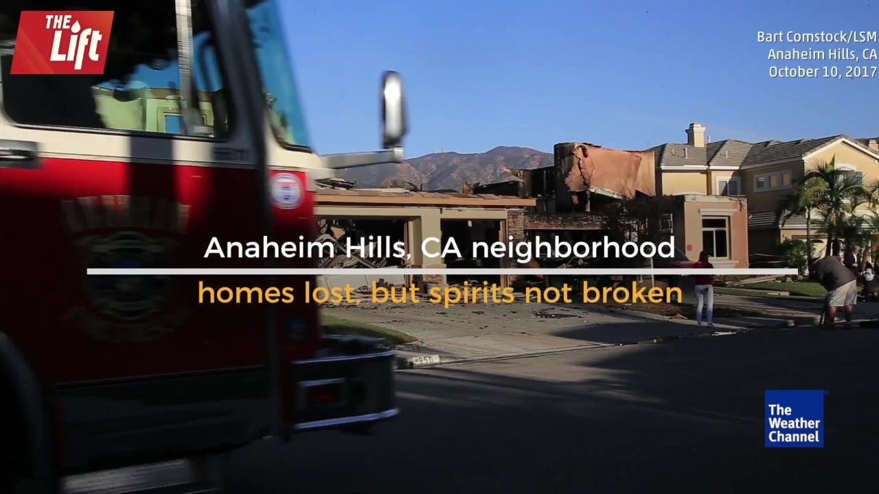 A red fire truck is parked on the side of a street with a damaged house in the background. The house has a collapsed roof and visible structural damage. The street sign reads 'ANHEIM HILLS, CA NEIGHBORHOOD' with the words 'HOMES LOST, BUT SPIRITS NOT BROKEN' below it. The image is overlaid with a logo and text that rea... | anaheim pio talks saving homes in anaheim | d0c08611eb02ae5ac7436061815b87441da850eee1e20bb4c6151328a20830c8 | 000910719739 | 0 | 0 | 70 | 7 | 0 | 0 | |