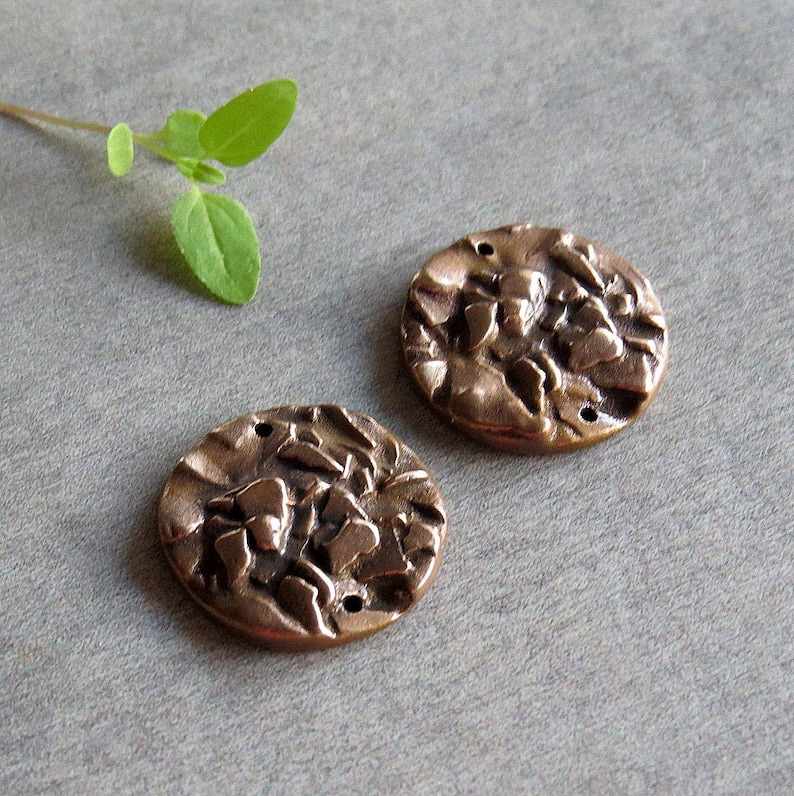 Two antique bronze coins with a textured surface and a leafy green plant with small leaves are placed on a grey surface. | Organic Bronze Jewelry Links Organic Patina Charms Handmade Bronze Rustic Findings Plant Components Artisan Findings | 99e6fa2b6d81e820aeea9bf8eab11a9564b8679ed4eccb7b69f431c8a1c57c41 | 000910719913 | 0 | 0 | 22 | 15 | 0 | 0 | |