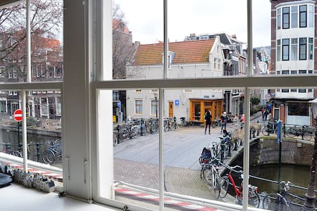 A view of a canal in Amsterdam with bicycles parked along the side, people walking on the bridge, and buildings lining the canal. | Corner apt with canalview @ Jordaan | 1e42dd9d1445870138e6661cbdf7426c07e12da0ab209d7243edd474617c6c24 | 000910720053 | 0 | 0 | 23 | 6 | 0 | 0 | |