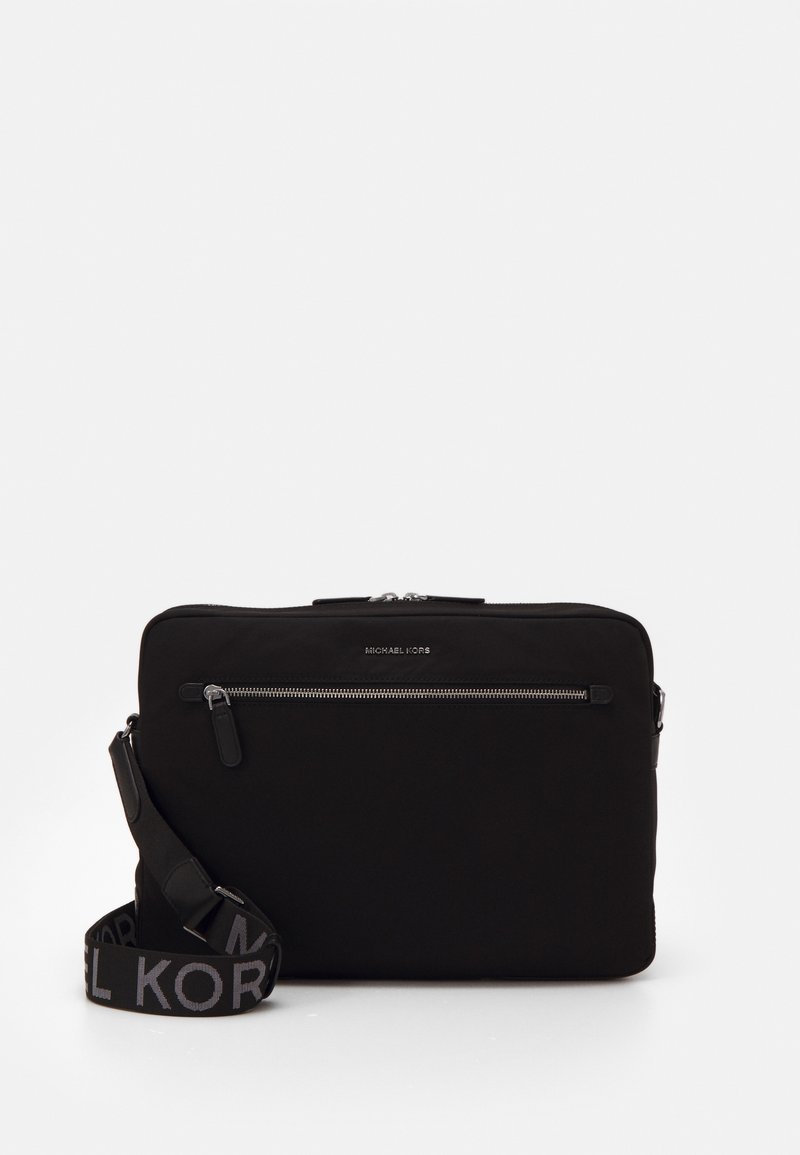 A black leather briefcase with a zipper closure and a strap with a buckle is placed on a white background. The briefcase has a small logo on the front and a larger logo on the strap. | Michael Kors - CAMERA BAG UNISEX - Borsa porta PC - black | 1488a1d90f9b794d4a0943bc0e77ec4c7c28425fc275bbdcf549e8878308e64f | 000910720230 | 0 | 0 | 36 | 12 | 0 | 0 | |