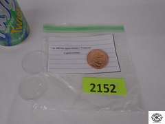 A clear plastic bag containing a single penny, a piece of paper with a handwritten note, and a numbered tag reading '2253'. The bag is placed on a white surface, and there is a bottle of 7 Up soda in the background. | 1 oz .999 Fine Copper Donald Trump Coin | d89188f104e6eba1bdbb9d0506c1f4b87a7ab783859dc5ef07f5fe3ebf42e548 | 000910720861 | 0 | 0 | 42 | 8 | 0 | 0 | |