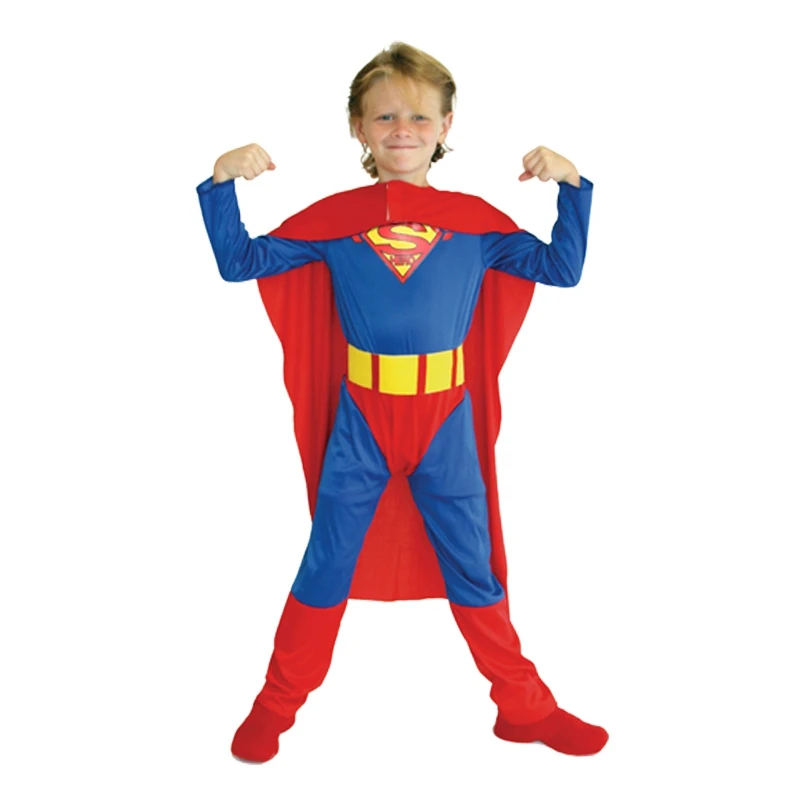 A young child is standing with arms flexed, wearing a blue Superman costume with a red cape, yellow belt, and red boots. | Umorden Purim Carnival Party Halloween Costumes Children Superhero Superman Cosplay Kids Super Man Costume Boys Fancy Jumpsuit | 145f8efd40aa19095c4a5a2e2173de2794e2ea835dd627934c3e1ccc2a835f8f | 000910721010 | 0 | 0 | 22 | 17 | 0 | 0 | |