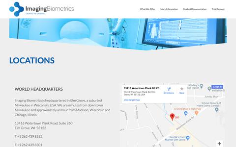 The second image is a webpage design with a blue and white color scheme. It features a large map of the area with a red pin indicating a specific location. The webpage includes a header with the text 'IMAGING BIOMETRICS' and a subheading 'Locations'. Below this, there is a paragraph of text describing the location, fol... | Screenshot of Contact Page Locations Page imagingbiometrics.com - Locations \xe2\x80\x93 Imaging Biometrics - captured Nov. 14, 2018 | 69ca43e07c24d89d100b3e4a71434cbaec1d8606aee0f91924247d08e79f5aa5 | 000910721190 | 0 | 0 | 89 | 17 | 0 | 0 | |