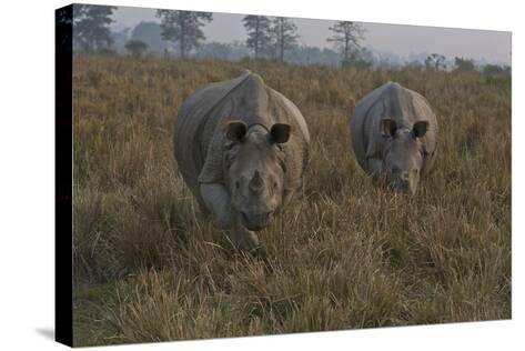 A framed picture of two rhinos standing in a grassy field with trees in the background. The rhinos are facing each other, and the grass is tall and golden. The frame is black and the picture is set against a white background. | A Pair Of One-Horned Indian Rhinoceroses In Kaziranga National Park-Steve Winter-Stretched Canvas Print | c24fa7b38103ebd843209734c28521f11f2483a0541ab174eddf71114ce571a2 | 000910721282 | 0 | 0 | 42 | 13 | 0 | 0 | |