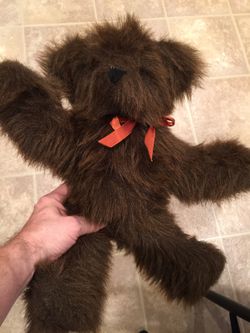 A brown teddy bear with a red bow tie is being held by a person's hand. The bear is sitting on a tiled floor, and the person's arm is visible, with the hand holding the bear. | Vermont teddy bear company teddy bear for Sale in Alexandria, VA | e2d683584d50f3418e8e080e2b76d5e124c2e6a0ea6dca1bac0b4bea333fbfdc | 000910721241 | 0 | 0 | 36 | 11 | 0 | 0 | |