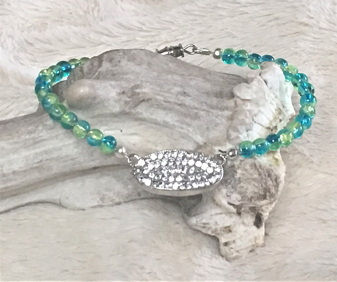 A silver bracelet with a large, ornate silver pendant featuring a diamond-like design is displayed on a white furry surface. The bracelet has a row of blue beads and a silver clasp. | Glass Sparkle Bracelet | e795447f8b0b5ba3057411808efd50871175f642e84c05129a0b72d53ecd08c3 | 000910721194 | 0 | 0 | 32 | 3 | 0 | 0 | |